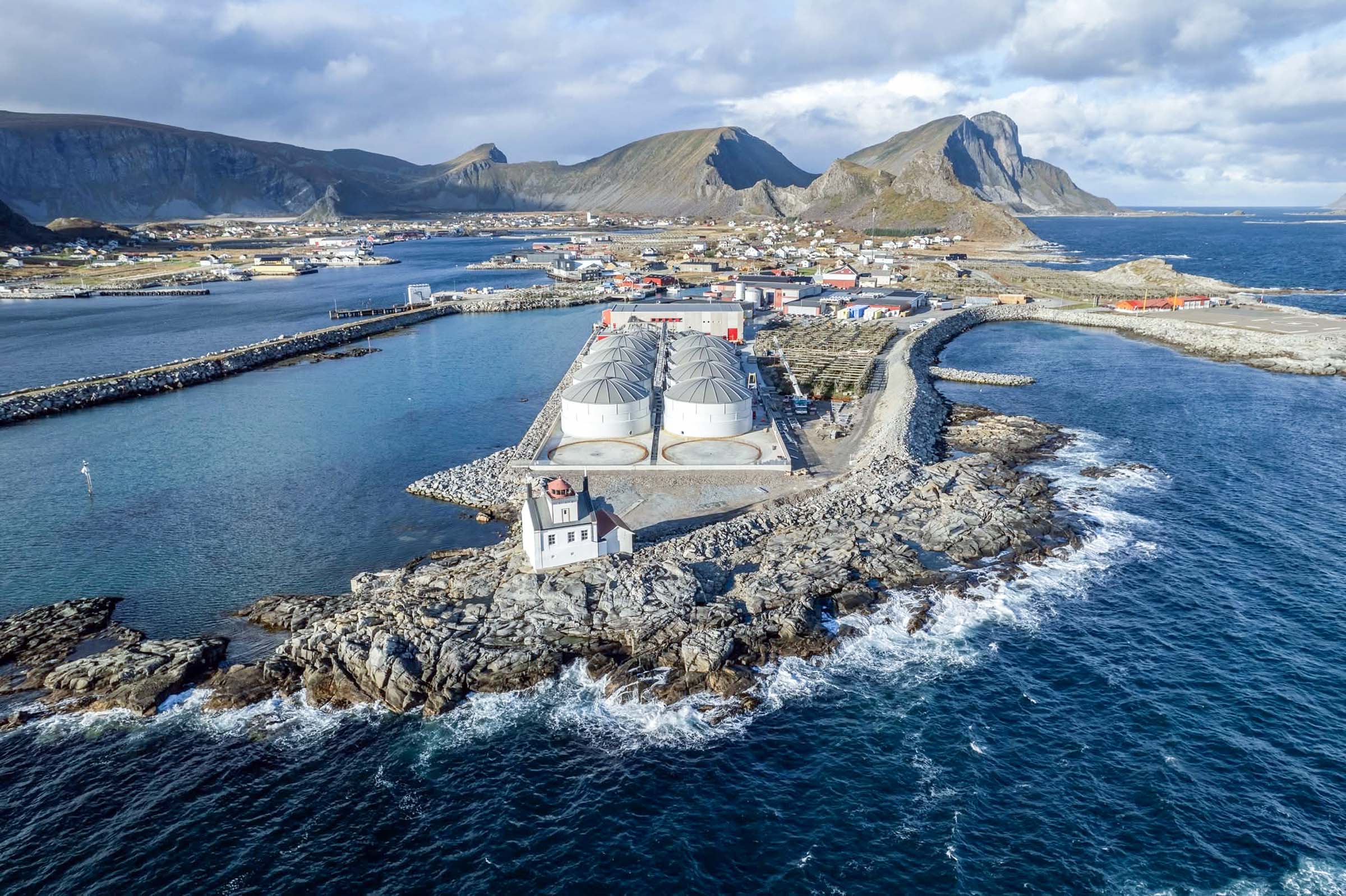Lofoten Viking AS på Værøy er det største fiskeriselskapet i Norge med Viking i navnet. I forgrunnen Lofoten Biomarine, som vil være med å sikre stabil drift i Norges første klimanøytrale fiskeoljefabrikk! (Foto: Lofoten Biomarine AS)