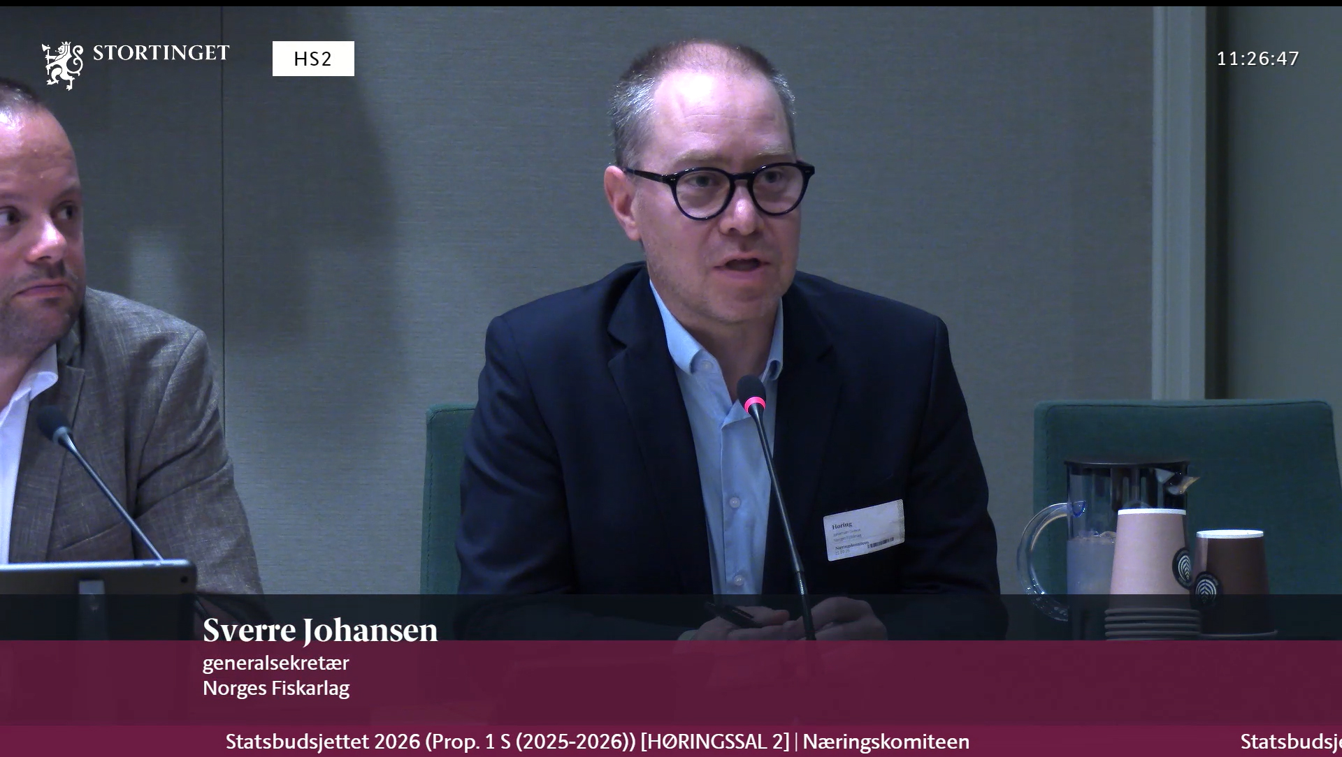 Sjømat Norge: For det første må det bli slutt på at man gjør opp statsbudsjettene med innføring av nye skatter og skatter med tilbakevirkende kraft. Det samme gjelder nye avgifter. Det skremmer oss at det nye statsbudsjettet foreslår en ny avgift på tapt fisk fra 2027. Vi opplevde at forslaget om en avgift på tapt fisk var et slags følge av innføringen av lusekvoter, og at den ble parkert i havbruksforliket. Vi vet ikke før tidligst i 2028/29, kanskje senere, hva som blir havbruksreguleringene. Nå er det derfor viktig at Stortinget tydeliggjør at denne formen for snikinnføring av avgifter må stoppes. Det samme gjelder CO2- avgiften som foreslås på fiske i internasjonalt farvann. Den bidrar ikke til et gram mindre klimautslipp, men kommer til å føre til stor råvarelekkasje fordi fiskerne vil gå til utenlandske havner for å bunkre og levere fangstene der. Den vil også undergrave bunkerskapasitet i Norge. Ettersom norske fiskere er alene i verden om å få pålagt en slik avgift vil Norge få dårligere konkurransebetingelser i markedet. Alle disse punktene ble bekreftet da man klokelig landet på å sløyfe innføringen tidligere i år. At man da nå forsøker igjen, rett nok med en liten økning i kompensasjonsordningen, er ikke holdbart. Det er ikke CO2-avgift på sjømatproduksjon utenfor Norge og det er heller ikke CO2-avgift på annen matproduksjon i Norge, bortsett fra sjømaten. Både havbruksflåten og fiskeflåten innaskjærs har for eksempel CO2-avgift i motsetning til landbruket. Vi må ha en harmonisering og kan ikke holde på å bruke slike fiskale avgifter! At man i tillegg foreslår dette i et år med rekordsvake kvoter, hvor både pelagisk sektor og torskesektoren er helt på felgen og norsk fiskeindustri trenger alle de råvarer den kan få, gjør det ekstra alvorlig.