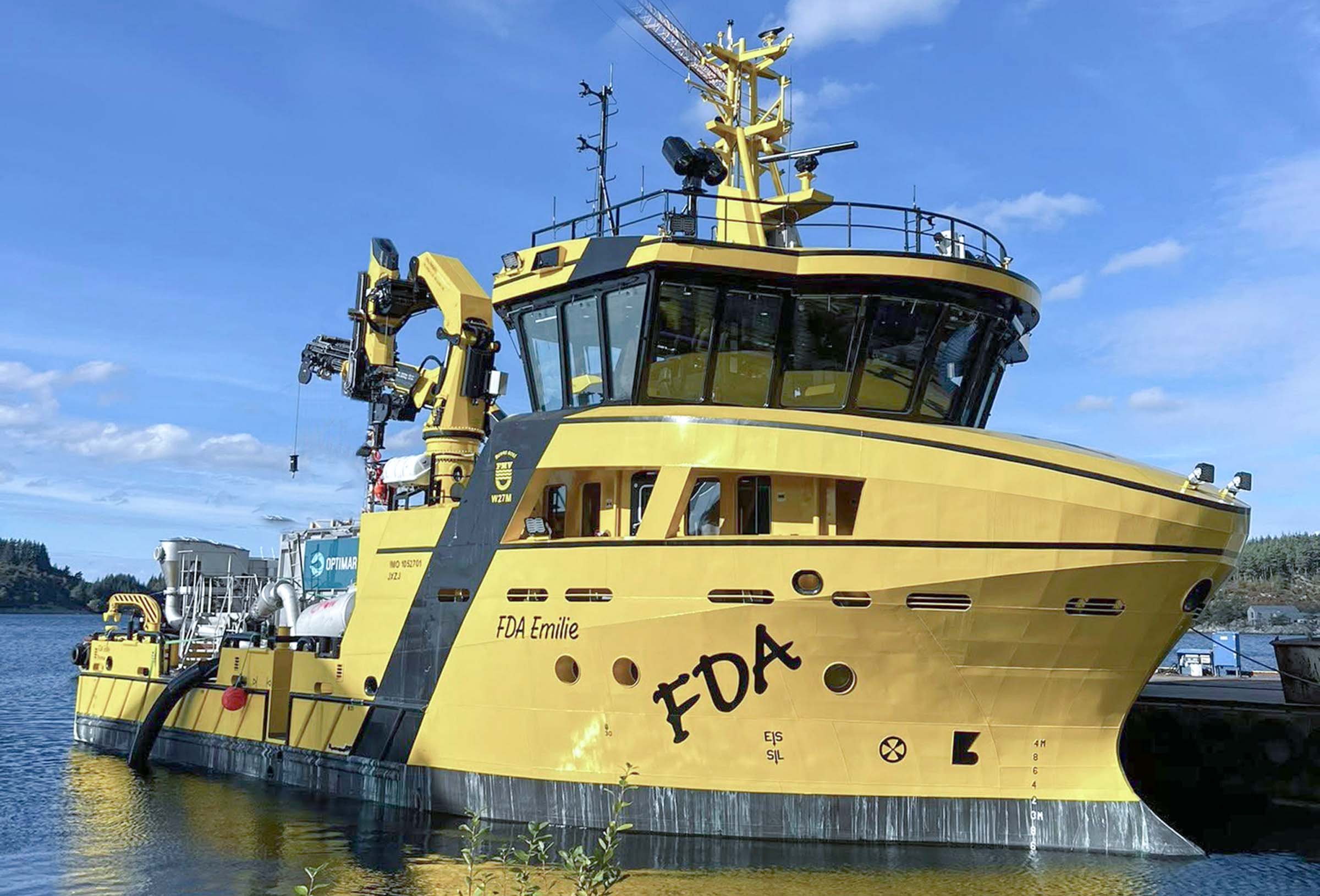 «Emilie» har en innredning for seks personer, 80 tonns dekksvinsj, 5 tonns capstan, taupinner, store kraner og et arbeidsdekk på 160 kvadratmeter. Båten har den samme gjenkjennelige gulfargen som de øvrige farkostene til Finnsnes Dykk & Anleggservice AS (FDA)