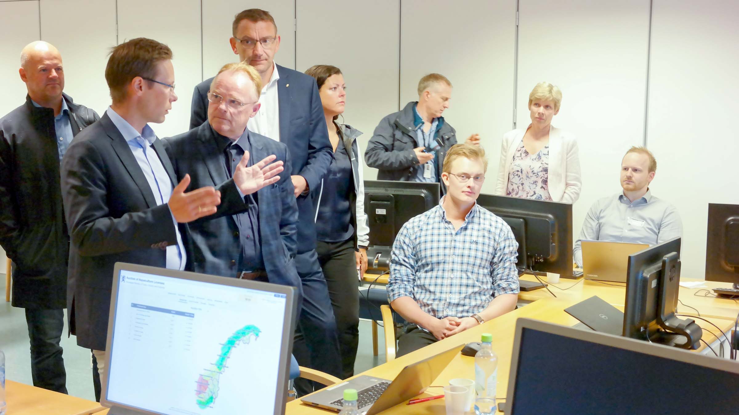Fra den første auksjonen av MTB for laks og ørret sommeren 2018. Dette var noe av det siste fiskeriminister Per Sandberg fikk gjennomført før han måtte gi seg. Hva med å auksjonere ut fiskerettigheter? undrer Bent Dreyer. Han er neppe alene om det. (Foto: NFD)