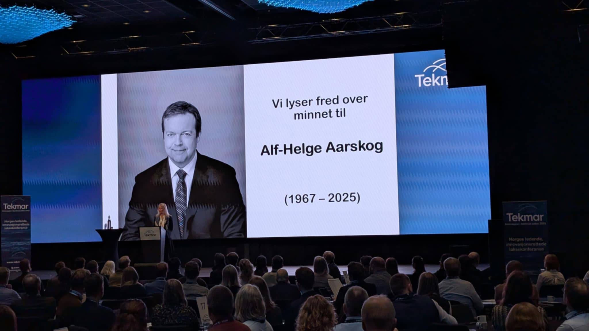 Den årlige Tekmar-konferansen i Trondheim åpnet med å hedre den tidligere Mowi-sjefen og viktige industribyggeren Alf-Helge Aarskog. Mandag 1. desember ble det kjent at Aarskog er død etter kort tids sykeleie, og hele salen reiste seg for ett minutts stillhet og for å sende tankene til Aarskog og hans nærmeste.