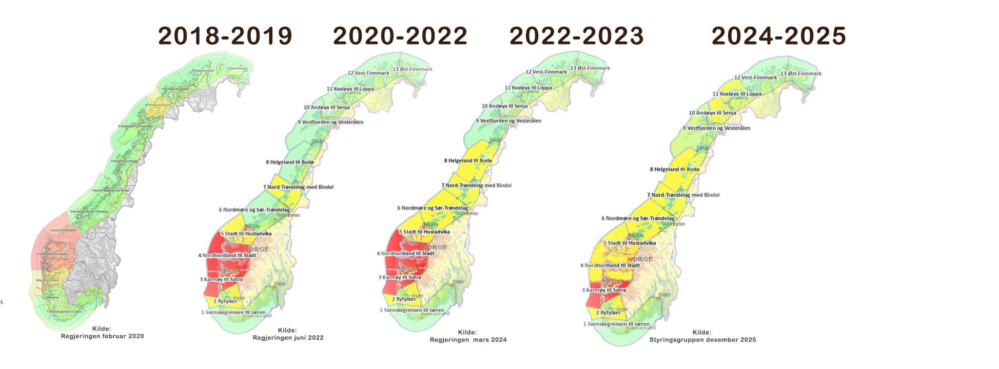 Nordly karakteriserte spredningen av røde og gule felter på norgeskartet som «nærmest en kreftsvulst». Og mente utviklingen sto i grell kontrast til erklærte målsetninger om årlig vekst. I 2026 kan man vente det motsatte – selv om man får produksjonsvekst i PO 1, 12 og 13.