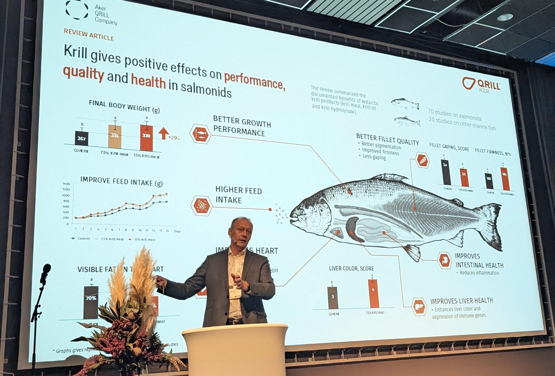 — Og kvoten utgjør under én prosent av biomassen i dette området. Tar man med hele området der det er lov å fiske krill, utgjør fisket bare 0,15 prosent av biomassen, sa han til AqKva-salen.