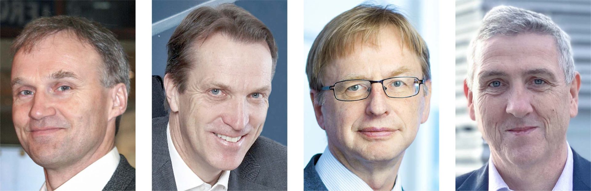Cermaq Group AS, som eier Cermaq Norge AS, har hatt fire konsernsjefer siden starten i 1995. Fra høyre Geir Isaksen (1995-2011), Jon Hindar (2011-2016), Geir Molvik (2016-2022) og Steven Rafferty siden mars 2022. (Foto: Diverse)