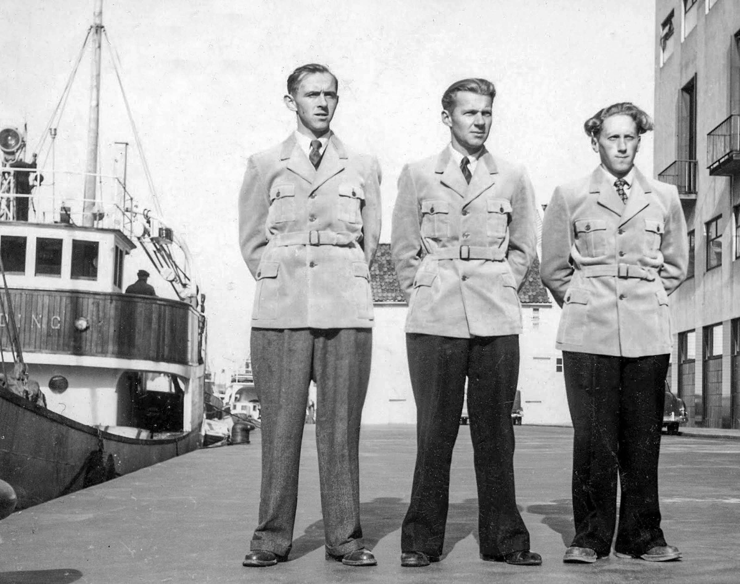 Norge har fisket sild ved Island siden midt på 1800-tallet. Her tre fornøyde «islandsfiskere» vel hjemme i Haugesund etter en vellykket tur til Island i 1953. De kostet på seg fjonge fløyelsjakker, sikkert til stor munterhet for resten av mannskapet. Fra venstre Trygve Høivik, Anders Vaage og Nils Helgeland. (Foto: Anders Vaage.)
