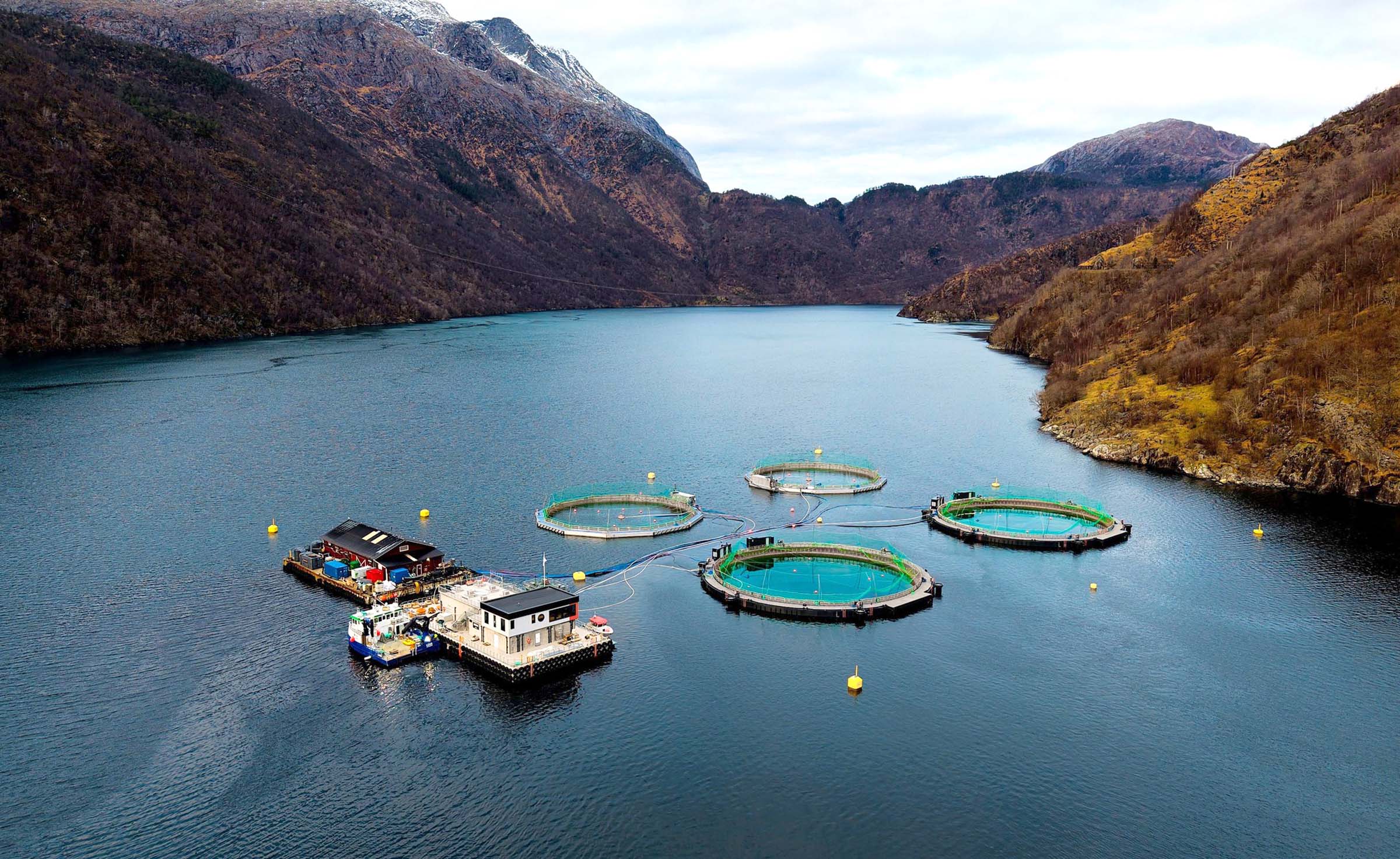 MOWI ASA er et av de selskapene som går foran i omstillingen av norsk fiskeoppdrett. Allerede i 2013 tok MOWI i bruk lukkede merder og nå har man en klart uttalt storsmolt-strategi. Bildet viser MOWIs anlegg med lukkede merder på Slåttenes i Kvinnherad kommune i Vestland. (Foto: MOWI)
