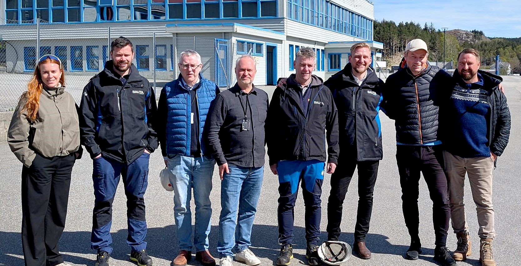 Sammen om nye tanker: Bærekraftskoordinator i Bauta Group Suna Aadahl Karikoski, CEO Bauta Group Daniel Sundet, styreformann i Oceandock Bjørn Sindre Synnes, medeier i Bauta Fishfarms Glen Bradley, Bauta-gründer John Arve Sundet, daglig leder i Bauta Fishfarms Gjermund Kvernmo Langset, medeier i Prophylaxia Johan Emil Andreassen og styreleder i Prophylaxia Bjørn-Vegard Løvik. (Foto: HMS)