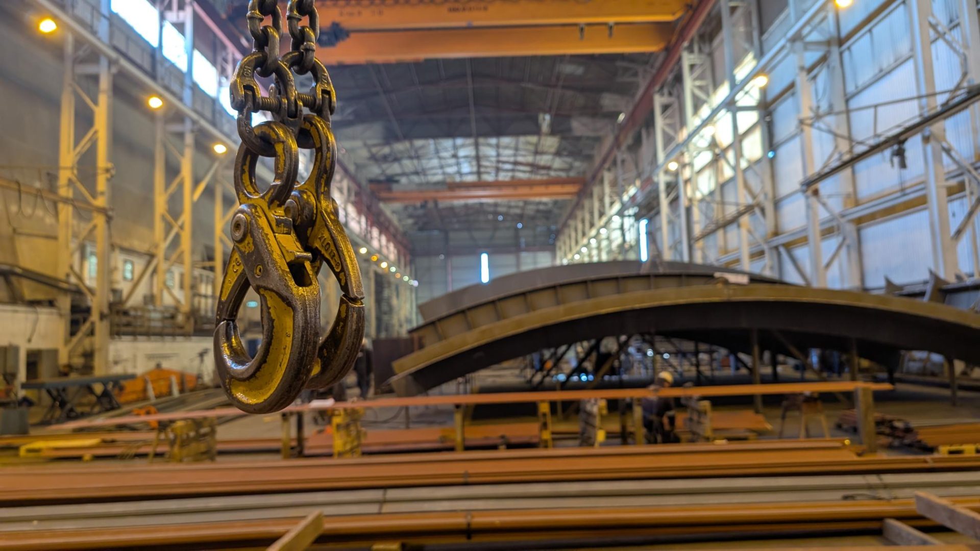 Dette kan være begynnelsen på noe riktig stort. Det buede panelet skal bli en veldig stålmerd som igjen kan få mange etterfølgere. Dermed kan det også bli mye aktivitet i denne og andre industrihaller. (Foto: HMS)