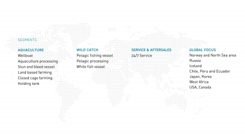 This pooling of specialist expertise makes us a complete supplier of advanced and sustainable system solutions for the handling, processing and cooling of fish to the seafood industry onshore and offshore – worldwide.